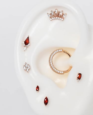 With over 23 years of needle piercing expertise and a formal background in microbiology, our founder Andromeda brings an unmatched commitment to safety and artistry. We follow a science-based approach, no shortcuts, no compromises. Every piece of jewelry we use is implant-grade, sterile, and crafted from high-quality, hypoallergenic precious metals. Our conflict-free stones include both lab-created and natural diamonds and gemstones, offering ethical and beautiful options for every budget.